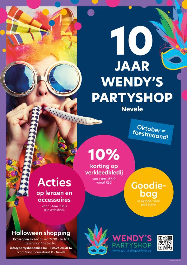 Wendy's Partyshop werd opgericht in september 2015 door Wendy Van Vlaenderen en haar moeder Chantal Van Parys. De winkel is gesitueerd te Nevele die door moeder en dochter opengehouden wordt. Je kan er terecht voor een divers aanbod feestartikelen.